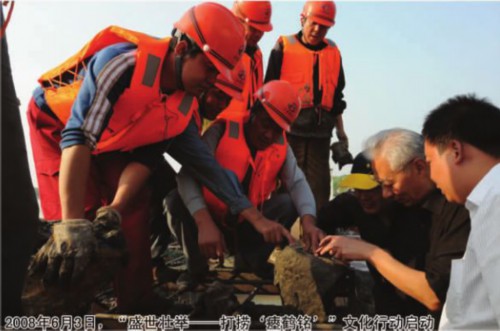 ● 2008年6月3日,“盛世壮举——打捞‘瘗鹤铭’”文化行动启动。