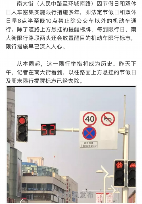 好消息!本周起南大街取消节假日和周末机动车限行,但是……