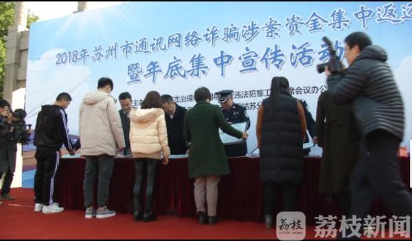 我苏网讯 今天(12月18号)下午,苏州警方也对一起通讯网络诈骗涉案资金进行了集中返还,现场返还金额近400万。