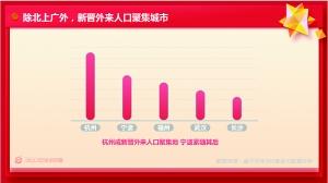 此外报告还指出,新晋外来人口热门聚集地中,同省沿海城市宁波紧随杭州其后。福州、武汉、长沙三个南方省会城市也成为新的离家工作青年的优先选择。
