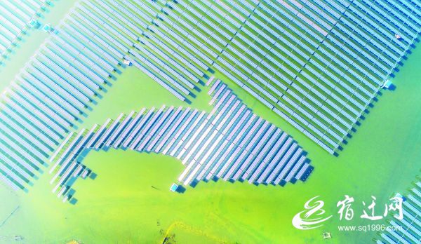12月18日,无人机航拍泗洪国家级光伏发电应用领跑基地,一条巨型光伏鱼图案栩栩如生,成为冬日天岗湖的一道靓丽风景。该项目总投资42亿元,占地15390亩,每年发电量可达6.5亿千瓦时,采用水上光伏发电、水下渔业养殖、岸边风力发电、周边观光旅游的“光伏+”立体倍增经营模式,可实现年税收5000万元以上,渔业养殖年收入4500万元,旅游消费2000万元,同时每年可节约煤炭26万吨,减少二氧化碳排放64万吨,有效地实现了经济发展、资源节约和环境保护的良性互动。