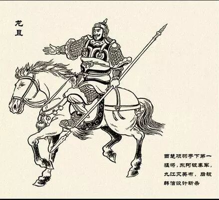 龙且(jū),出生年月不详,卒于公元前203年,中国楚汉相争时期的人物,秦末楚汉争霸时期西楚国的将领,与曹咎、周殷同为楚军大司马。是项羽手下第一猛将,也是一个忠心追随项羽的人。在楚汉相争的时候,项羽身边很多老臣,因为项羽多疑的性格而出走,只有龙且始终不离不弃。“英布背楚,楚使龙且往击之。英布与龙且战,不胜,归汉。”楚汉相争时龙且曾打败了汉军的英布,后来与汉军再次交手时,遇到了劲敌韩信,“韩信与龙且大战,骑将灌婴击之,大破楚军,杀龙且。韩信因自立为齐王。项王闻龙且军破,则恐。”在此战中龙且为韩信所败,并被杀。