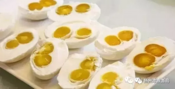 双黄鸭蛋是扬州高邮的特产,一蛋双黄,蛋白如璧玉,蛋黄似玛瑙,红白相间,璧合珠联,是全世界最值得品尝的100种味道之一。