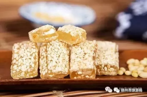 被称为“扬州一绝”,口味香甜,外层芝麻均匀,切面棕色光亮,呈半透明状,富有弹性,味香,细嚼不黏牙,在海内外享有盛誉,早在清朝乾、嘉年间就已面市扬州。