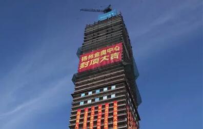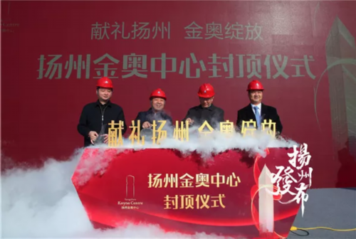 此次封顶的主楼高300米,被誉为苏中第一高楼,成为扬州城市建设史上的新地标。