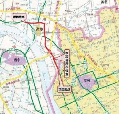 S356高港段改扩建工程:起于高港区东夹江路,途径永安洲镇、口岸街道、刁铺街道、核心港区、滨江新城,终于扬州与泰州分界处,线路全长约19.45公里。