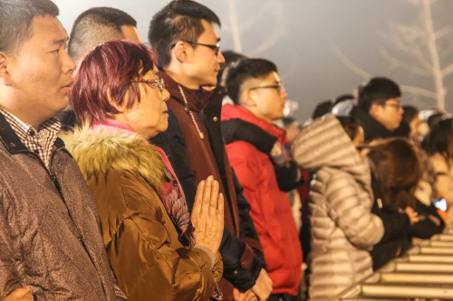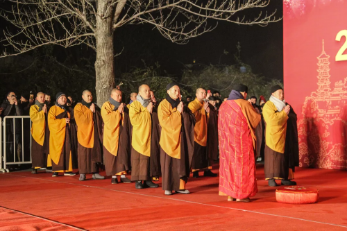 撞钟开始之前,游客现场还能欣赏到江天禅寺进行的宗教祈福法会。