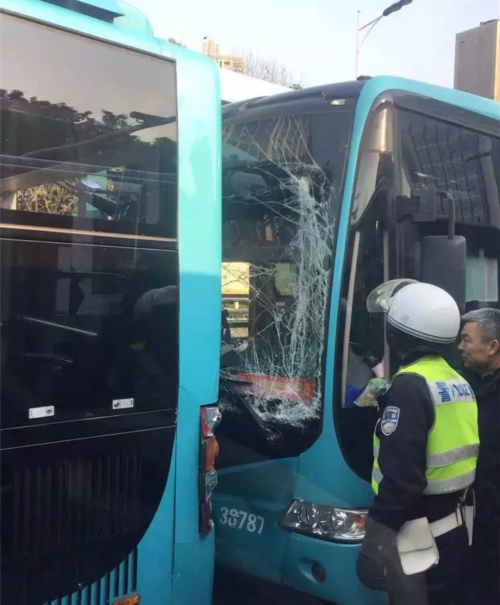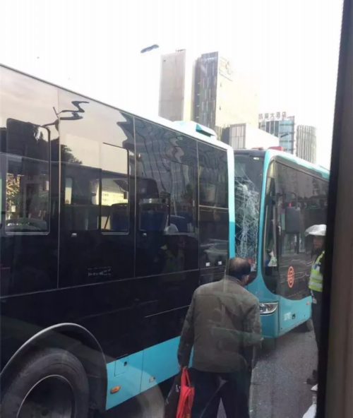 B12路公交车追尾B1路,