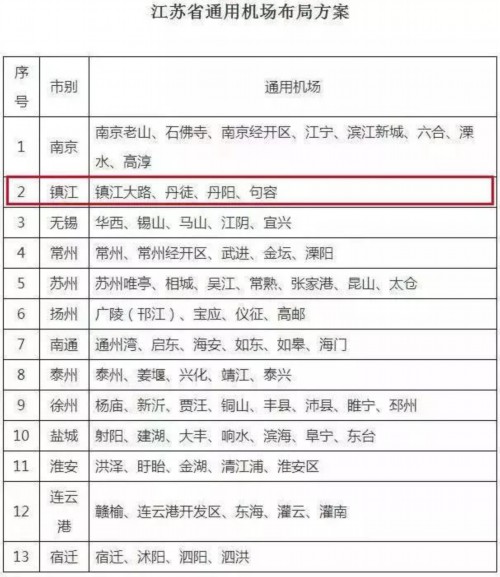 镇江将布局4个通用机场