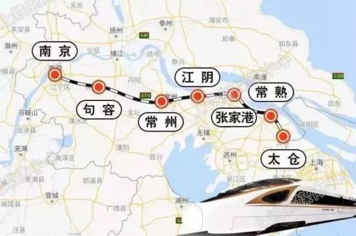 江苏南沿江城际铁路是时速350公里的高速铁路,线路自京沪高铁南京南站引出,向东经句容市、金坛区、武进区、江阴市、张家港市、常熟市,终至在建的沪通铁路(上海—南通)太仓站。新建正线长度278.53公里。全线共设南京南-句容-金坛-武进-江阴-张家港-常熟-太仓等8个车站,建设工期为4年。