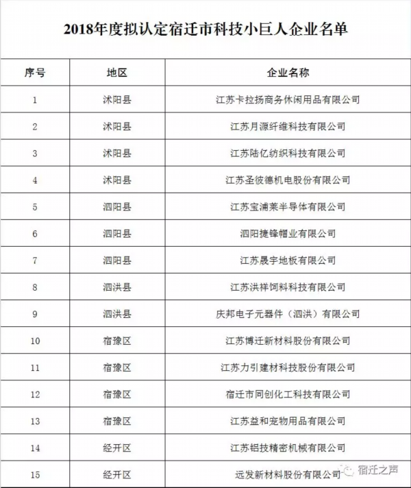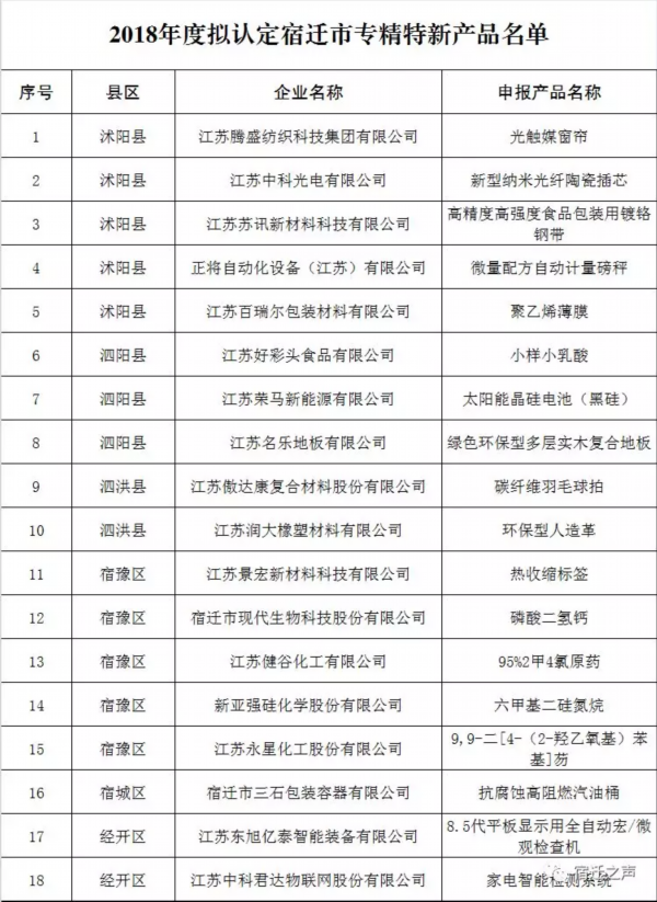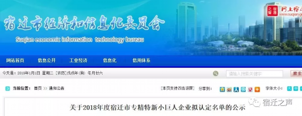 近日,宿迁市公示了2018年度市专精特新小巨人企业拟认定名单,一起来看看宿迁这些优秀的企业~