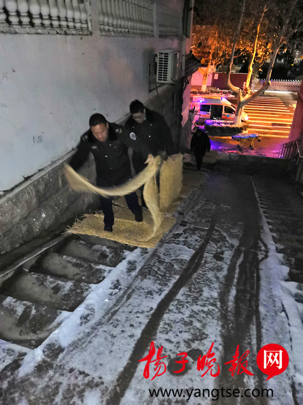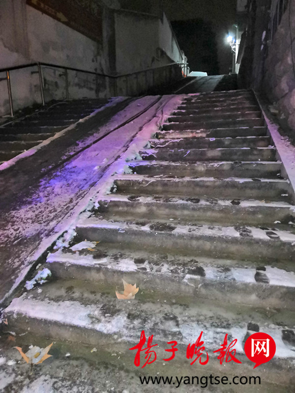 但是,救护车到达现场时,却发现老人家地址靠着镇江梦溪路外国语学校附近,但去老人的家,必须步行经过一个将近45°坡度的阶梯。当时,由于下雪结冰阶梯上全是冰,急救人员小心翼翼,冒着跌倒的风险,艰难的到了老人家中。