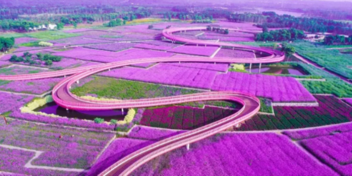 六月的一片紫色花海,可以成为出发的理由。此时三台山的万亩花海都笼罩在紫色馥郁的芬芳里,大片的马鞭草、鼠尾草、飞燕草、美女樱随风起伏,仿佛大地上延伸的紫色梦境。