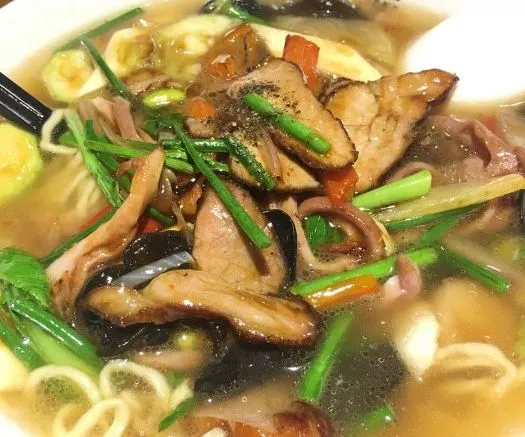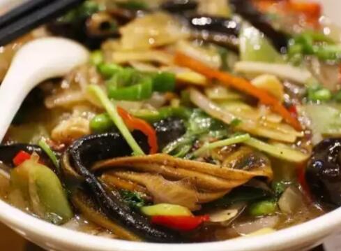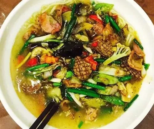 淮安的烩面馆也有不少,烩面清爽而且不油腻,人气最高的当属拆骨杂烩面和红烧猪肝杂烩面,面汤是由圆骨精心熬制而成,拆骨肉都是现拆,保证新鲜。面条入口有嚼劲,时间久了就会烂,这也说明这面条不带胶哦。碗里各种配菜看起来很是清爽。用筷子搅动一番,挑出下面的面来,素口吃,劲道十足。喝口汤,配着丰富的浇头,怎么吃都吃不厌。