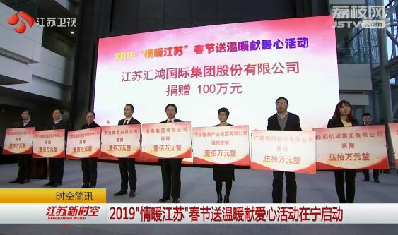 2019年"情暖江苏"春节送温暖献爱心活动今天(1月8日)在江苏广电总台启动。春节前夕,全省民政、慈善等有关部门将深入基层,深入最困难群众家庭,为全省困难群众捐赠1000万元善款购置新春"年礼",让他们和全省人民一道过个好年。