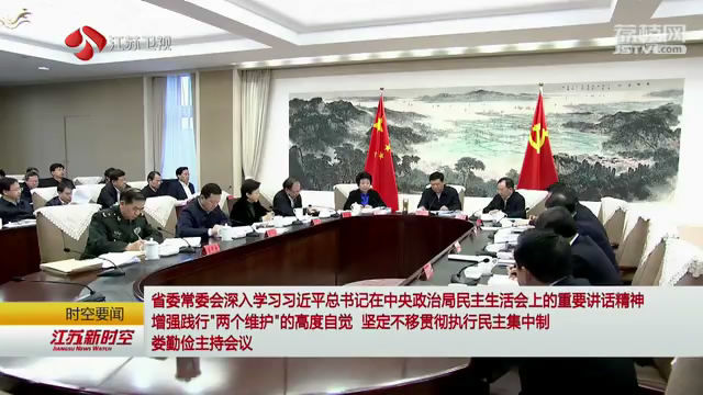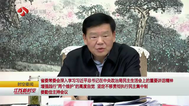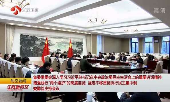 会议指出,习近平总书记在中央政治局民主生活会上的重要讲话,思想深邃、内涵丰富、语重心长,为我们上了一堂生动的党性教育课。要深入学习领会和贯彻落实总书记重要讲话精神,增强践行“两个维护”的高度自觉,坚定不移用习近平新时代中国特色社会主义思想武装头脑,真正做到学懂弄通做实,努力把其中蕴含的真理力量、思想力量、实践力量转化为做好一切工作的精神动能,坚决维护习近平总书记核心地位、维护党中央权威和集中统一领导,切实增强“四个意识”,确保总书记重要指示批示精神和中央决策部署在江苏落地生根。