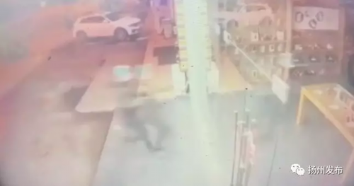 一个蒙面盗贼不惜用身体撞碎玻璃门