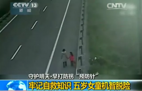 2015年,湖北一位5岁女童被一陌生中年女子强行带走,走上高速公路。在处境危险、孤立无援的境况下,小女孩临危不乱,并没有做激烈的反抗,而是顺从地跟随,在看到警察之后抓住时机立即主动求助。