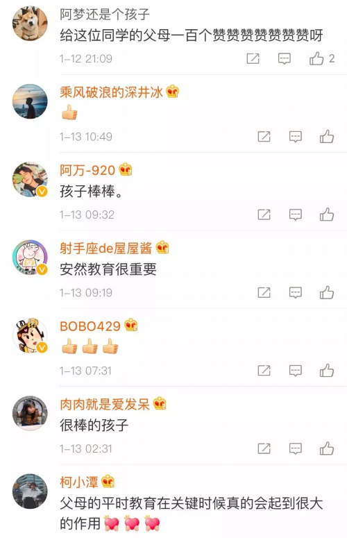 这两位小朋友在被困电梯的情况下没有慌张无措,而是保持镇定,采取措施积极自救。这样机智勇敢的“教科书式”自救受到了民警的表扬,也赢得了网友们的赞赏: