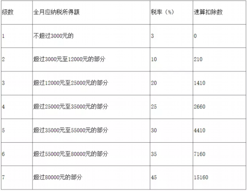 按月换算后的综合所得税率表: