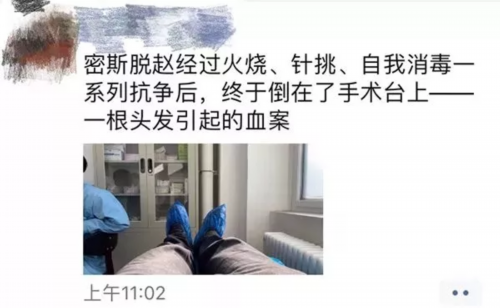 因头发扎进皮肤引发感染的病例,