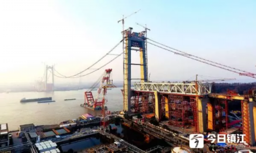 今天上午,记者从连镇铁路镇江长江大桥施工现场了解到,虽然气温极低,但广大建设者不畏严寒,高空作业,全力推进大桥建设,目前建设者正在加紧对上游猫道门架承重索和下游牵引系统的调整,春节前上下游2根基准索股开始安装,大桥将进入主缆施工,预计明年8月建成通车。