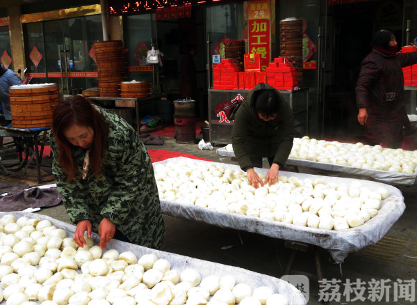 据了解,泰兴老百姓有春节吃馒头的习俗,寓意蒸蒸日上。过去一进腊月,泰兴人便开始蒸馒头,这是为了过年准备主食。“泰兴老酵馒头”是用老酵靠自然发酵、手工发面做皮,包上不同口味的馅,因蒸出的馒头色泽洁白、劲道耐嚼、风味独特而得名。如今,生活提高了,如今城乡年青力壮的都外出打工挣钱去了,大部分人家把蒸馒头的工作“外包”,自己做好馅,委托给点心店加工。