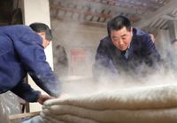 昨天(1月21日)上午,当记者一来到老刘家,一股浓浓的糍粑香扑面而来,大伙们正拿着木锤打糍粑,伴随着舂臼“嗵,嗵”声,热气腾腾地把一年的丰收和喜悦都融进了打糍粑的乐趣中。刘国富告诉记者:“早4点多钟就起床开始忙活起来了,今天一天要打4000斤糯米。”