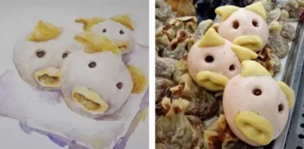 ▲江苏师范大学的“猪猪早餐包”,右边的作品出自食堂阿姨之手,左边的作品出自师大学生之手。