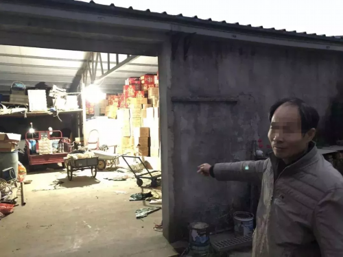 现场是一处三层楼的民宅,居于东安村委中心地段,四周都是居民房,一楼的客厅地上,桌上都堆放着大小不一的烟花,只剩下可以走人的过道,客厅边上的房间,楼道和三楼也堆放着烟花总计100多件。