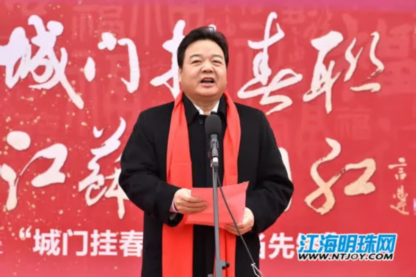 在揭联仪式上,市委常委、宣传部部长陆卫东表示,“城门挂春联,南通当先锋”揭联仪式,用中华民族的传统方式,为整座城市送上春之祝福。今天的南通,迫切需要这样的动力支持。站在“一带一路”、长江经济带、长三角一体化发展等重大战略机遇叠加的强劲“风口”上,南通正按照省委赋予的新使命新定位,努力成为江苏沿海崛起的龙头,争当全省解放思想跨越赶超的先锋、高质量发展的先锋、新时代干事创业的先锋。
