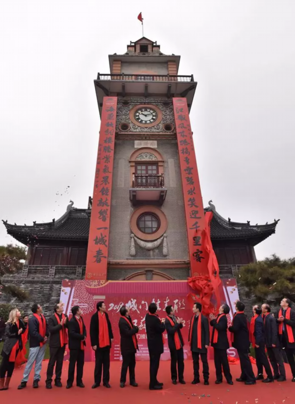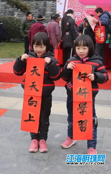 上午10时,由南通市委宣传部、新华报业传媒集团主办的“城门挂春联,江苏开门红”系列之“城门挂春联 南通当先锋”活动在南通钟楼举行“揭联”仪式。12米巨幅春联迎墙而立,笔锋苍劲有力,诗词行云流水,这副春联从全球近万条来稿中脱颖而出。作品不仅契合了南通的历史内涵,更融合了时代背景,呼应了历史进程,寓意南通城市发展迈入新征程。