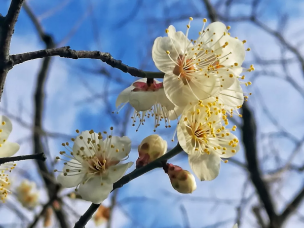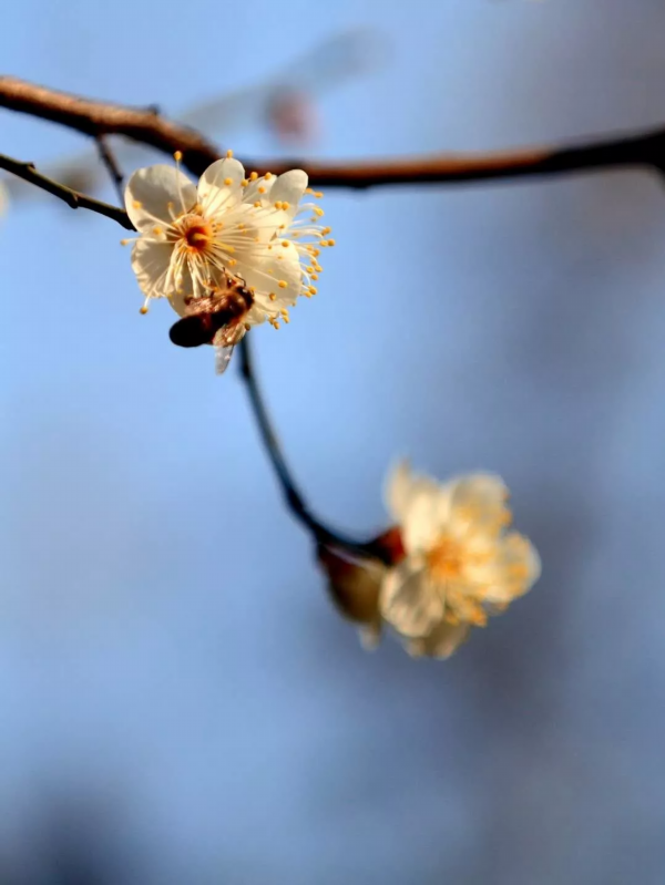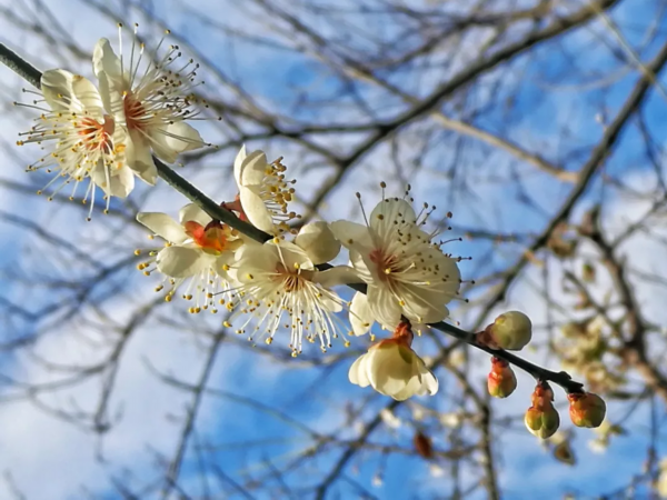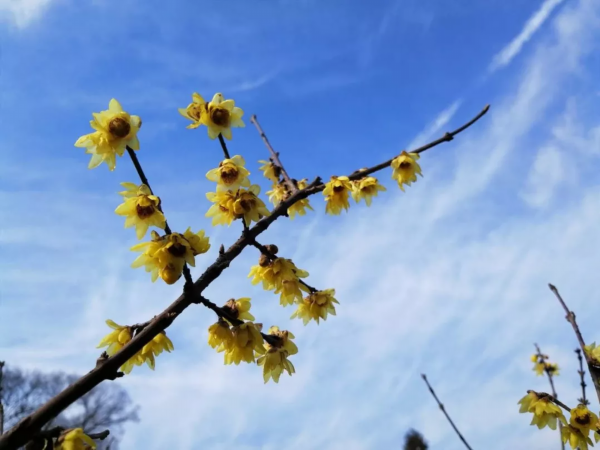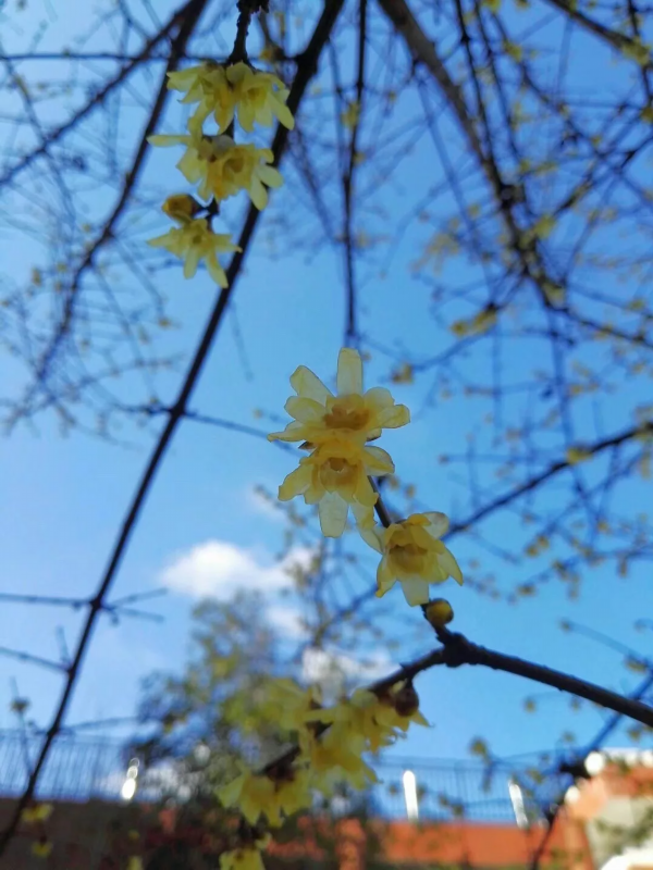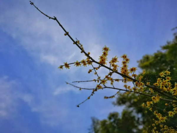 出门还能遇见初放的梅花和盛开的蜡梅,
