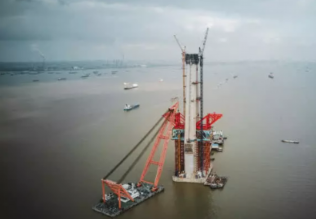 1月25日,29#主墩南北两侧“大吊车”将各重约1600吨的双节间钢桁梁安全、精准地同步起吊至70余米处高空的设计位置。沪通长江大桥主航道桥沪通长江大桥主航道桥全面开始双悬臂架设。
