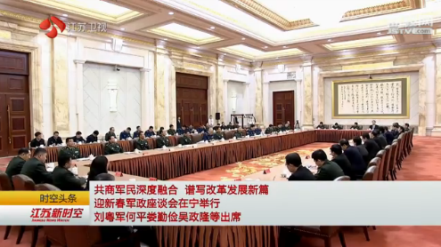 1月31日下午,农历春节即将到来之际,迎新春军政座谈会在南京举行,东部战区司令员刘粤军、政委何平和省委书记娄勤俭、省长吴政隆等军地领导欢聚一堂,共话军民鱼水深情,共商融合发展大计。