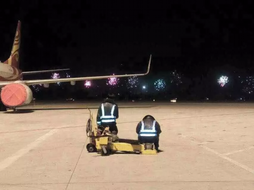 除夕夜的停机坪,面对着万家灯火烟花璀璨,还是有人要裹着厚重棉衣坚守着工作岗位。
