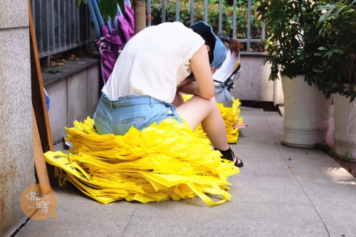 等待发放教育机构补习资料的人,他们不知道今天能发出去多少份,又能增加多少业绩收入。