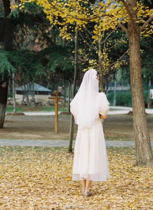 她和男朋友分手后,一个人去拍了婚纱照。