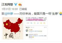 1月31日傍晚6点,“@江苏网警”发微博点名“咪蒙”,“致@咪蒙 ——对你来说,爱国只是一场‘生意’”,并附上咪蒙微博发布的关于爱国的不当言论截图。记者看到,截图中显示的不当言论分别来自于2016年7月13日“咪蒙”微信公众号和2013年5月22日的“咪蒙”微博。网警的点名立即引发大量网友围观,大家纷纷表达对咪蒙的谴责。