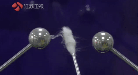 △肉眼可见的电火花打在棉花上,并没有明显的变化。