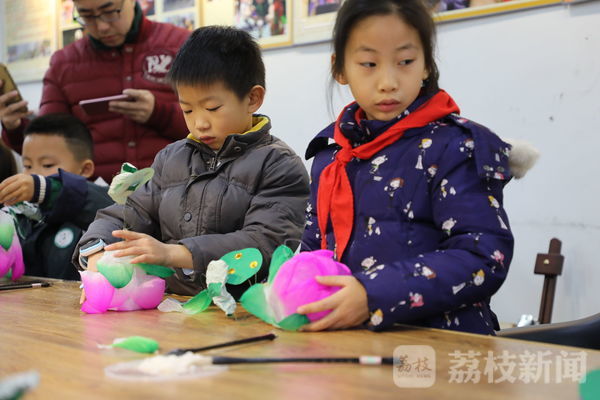我苏网讯 秦淮花灯是南京市国家级非物质文化遗产之一,为了欣赏花灯美景,聆听其中的故事,今天(2月2日)上午,南京玄武区非遗传播实践基地十几名小学生,伏在桌边糊自己的作品。