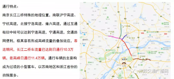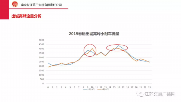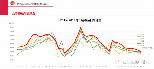 2019年春运,南京三桥的第一个小高峰已经在1月26日、27日出现。后面的流量峰值预计将是大年初六, 而且将是整个春运的高峰,第三个小高峰就是元宵节过后的第一天。