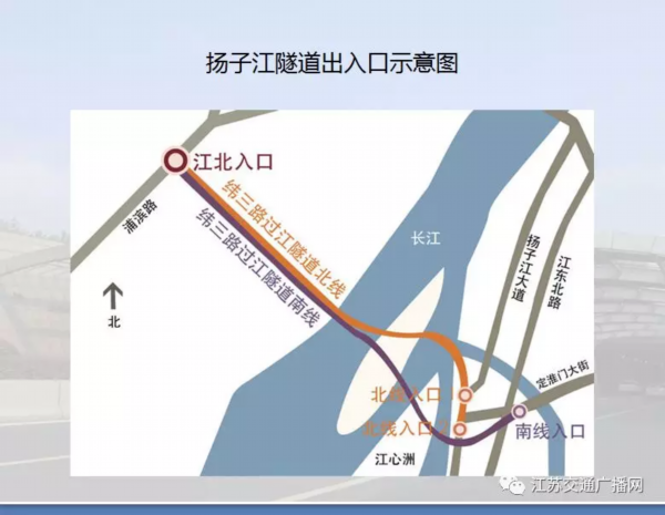 不过,这其中特别要提醒的是扬子江隧道的通行路线:分北线和南线,北线扬子江线有两个入口,一个在扬子江大道上,一个在海德卫城入口处,南线有一个入口,在定淮门大街上。