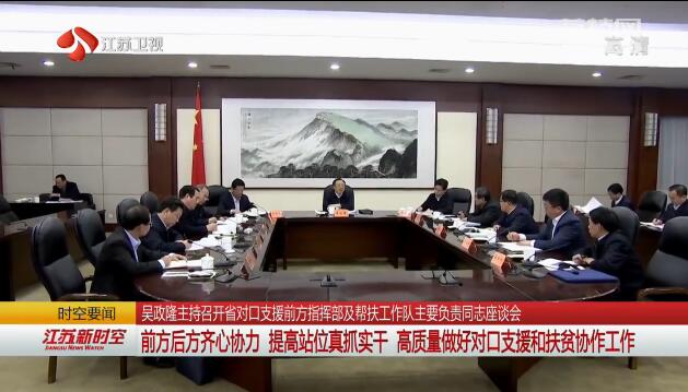 在认真听取省对口支援西藏拉萨市、新疆伊犁州、新疆克州、青海海南州前方指挥部以及帮扶青海省、陕西省、贵州铜仁市工作队的负责同志有关工作汇报后,吴政隆说,听了大家发言,深受启发,深受感动。过去一年,前方指挥部和帮扶工作队坚决贯彻党中央决策部署,在省委、省政府和当地党委政府领导下,带着感情和责任,与当地干部群众一道,建成一批暖人心、顺民意,促发展、惠民生的好项目,办成一批好事实事,对口支援和扶贫协作工作取得了新成效。成绩来之不易,省委、省政府充分肯定。