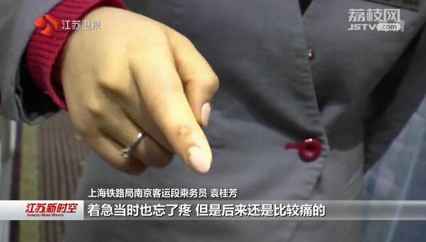 上海铁路局南京客运段乘务员袁桂芳:“着急当时也忘了疼,但是后来还是比较痛的。”