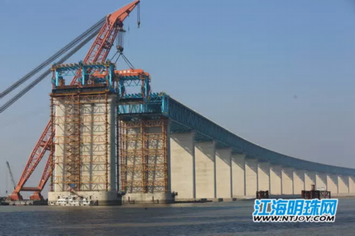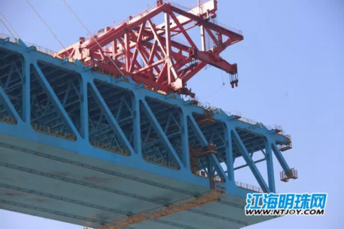临近春节,沪通大桥项目工地现场依旧保持快节奏,这已成了大桥建设者的常态……目前,大桥北主墩已完成21个整节段钢桁梁的架设,这段主桥钢梁已横跨长江490米,沪通长江大桥主航道桥已经全面开始双悬臂架设。