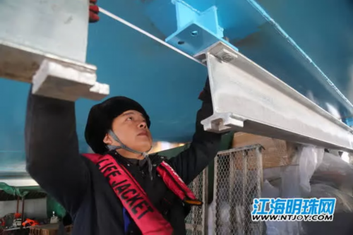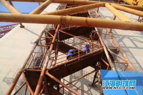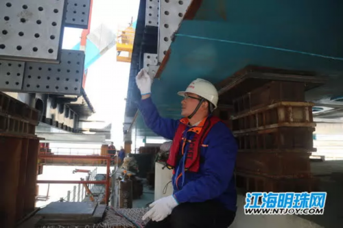 一个河南小伙、一个河北小伙,每天乘半小时轮渡到江心,爬70多米高的桥墩到塔顶,已经成为他们生活的常态。正是由于沪通大桥这样世界级的工程,让他们与南通结下情缘,在南通挥洒青春的汗水。在他们乃至每 一个大桥建设者的努力下,南通也将在沪通大桥建成后正式进入1小时上海生活圈,南通的经济也必将快速腾飞。