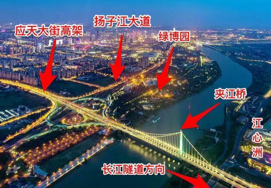 南京江心洲夹江大桥是南京长江隧道的组成部分,连接建邺区扬子江大道与江心洲,全长665.5米,主跨248米,为独搭自锚悬索桥,在国内尚属首例。
