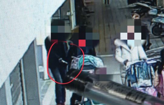 办案民警介绍,一个穿黑色衣服的扒手紧随一位推婴儿车的女士后面,他拿出一个镊子,镊子伸进了前面女士的外衣口袋里,将手机盗取之后,把盗窃来的手机和镊子放进衣服口袋里。