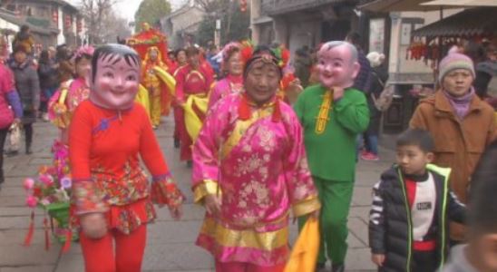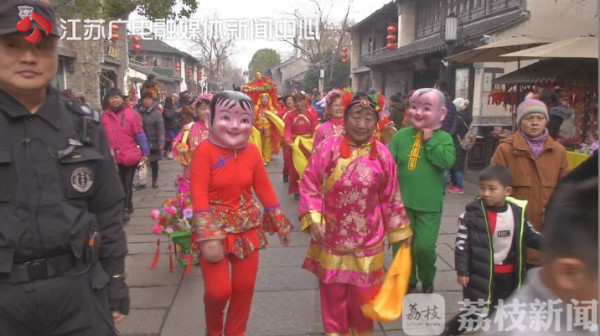在镇江句容、淮安洪泽等地,舞花船、赶毛驴 、舞龙……一个个传统文艺表演向市民们传递着新春祝福与问候。在连云港千年古城海州,传统的踩街活动开始了,花车、腰鼓、秧歌,一路敲锣打鼓,一路欢声笑语 ,整个海州城沉浸在节日喜庆氛围中。活动现场 ,还有财神爷发放“新年福袋”,恭贺新春、接福纳祥。